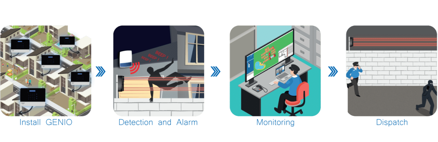 ไม่ว่าคุณจะอยู่ที่ไหน GENIO จะแจ้งเตือนทันทีเมื่อเกิดเหตุการณ์ฉุกเฉิน