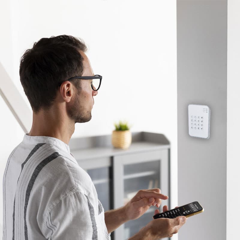 - มี 16 ปุ่มกด รวมทั้ง : เปิดระบบ / ปิดระบบ / ใส่รหัสเข้าพื้นที่ / เช็คสถานะ