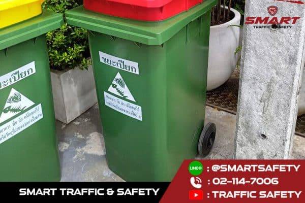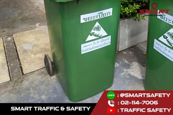ถังขยะสามาถสั่งทำสติ๊กเกอร์ชื่อหน่วยงานได้ ซึ่งทำให้บ่งบอกถึงชื่อหน่วยงาน และเจ้าของ