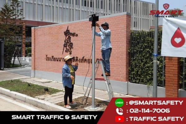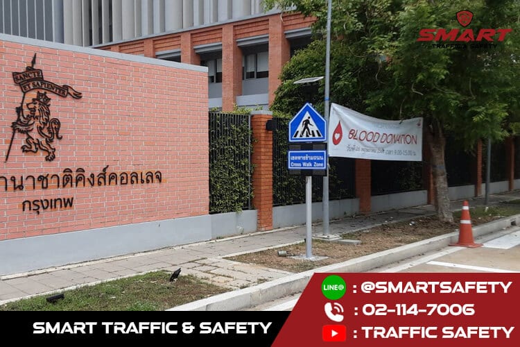 ป้ายไฟเขตโรงเรียน ได้ไปติดตั้ง โรงเรียนนานาชาติคิงส์คอลเลจ ป้ายเขตโรงเรียน พลังงานแสงอาทิตย์ มาตรฐานกรมทางหลวง ลดอุบัติเหตุและอัตราการเสียชีวิตได้ 100%
