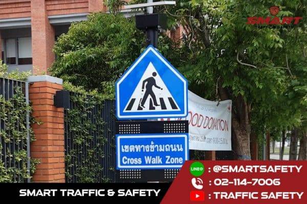 - ป้ายไฟเขตโรงเรียน ตัวเสาทำจากเหล็กชุบสังกะสี หนาไม่น้อยกว่า 1.2 มม ทำให้เกิดการคงทนต่อการใช้งาน