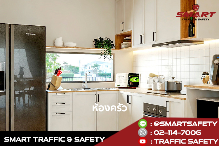 - ห้องครัว ในห้องครัวควรใช้กระเบื้องกันลื่นและระวังอย่าให้พื้นเปียกน้ำ ซึ่งทำให้พื้นลื่นและเสี่ยงหกล้มหัวฟาดพื้นได้ง่าย การที่ผู้สูงอายุเข้าครัวทำอาหารหรือใช้เครื่องใช้ไฟฟ้าอาจเป็นสาเหตุให้เกิดไฟไหม้ เพราะลืมเปิดเตา ลืมปิดอุปกรณ์ไฟฟ้า กล้องวงจรปิดรักษาความปลอดภัยในสถานการณ์ที่มีความเสี่ยงและแก้ไขได้ก่อนที่เหตุร้ายแรงจะเกิดขึ้น บ้านอัจฉริยะ ควบคุมผ่านมือถือสามารถควบคุมอุปกรณ์ไฟฟ้าในบ้านหลายชนิด ช่วยลดอันตรายที่อาจเกิดขึ้นจากไฟไหม้ได้
